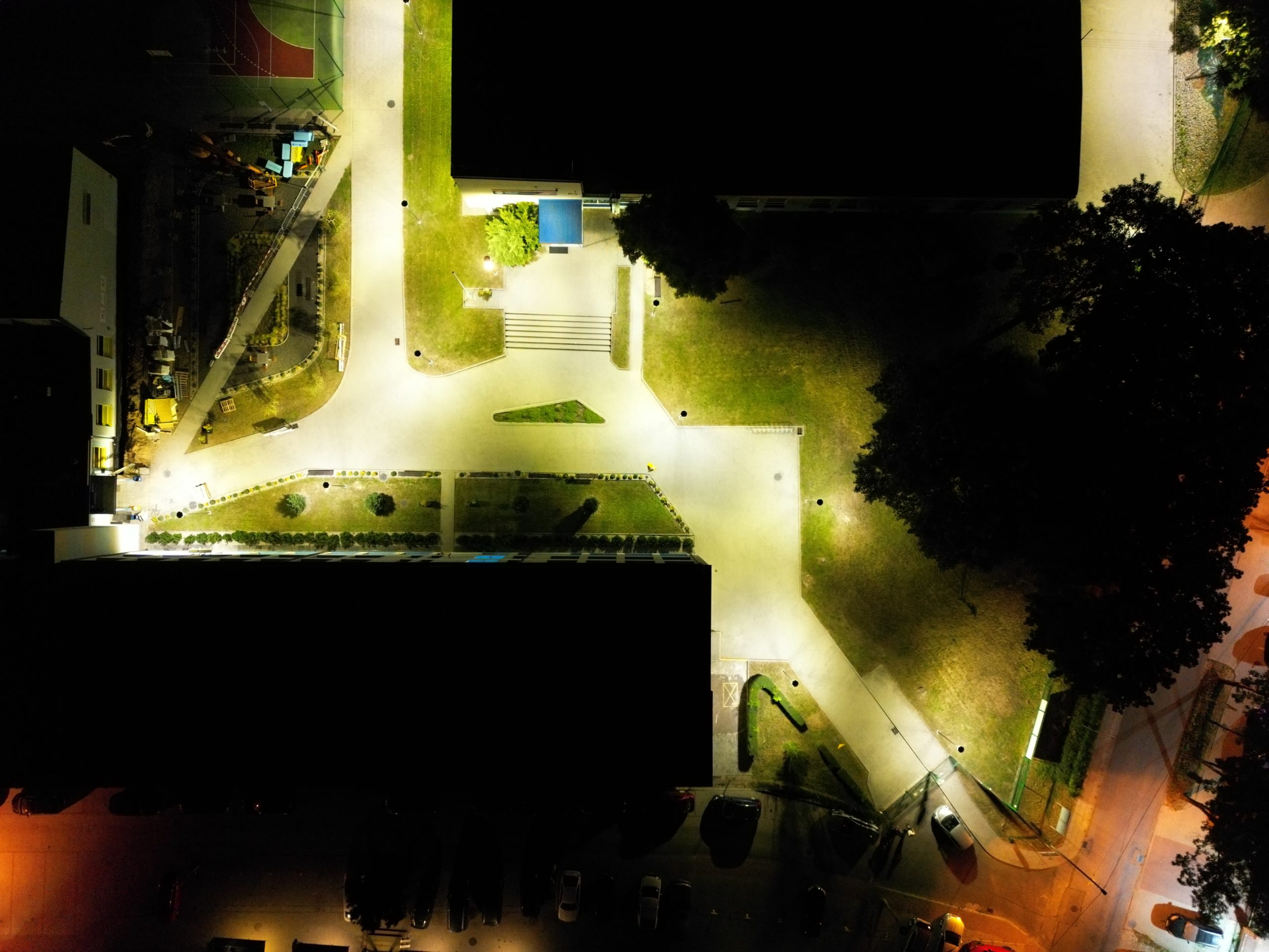 - Modernizacja instalacji oświetlenia zewnętrznego terenu zielonego i parkingów wokół budynków przy ul. Przyzby i ul. Magnolii w Krakowie